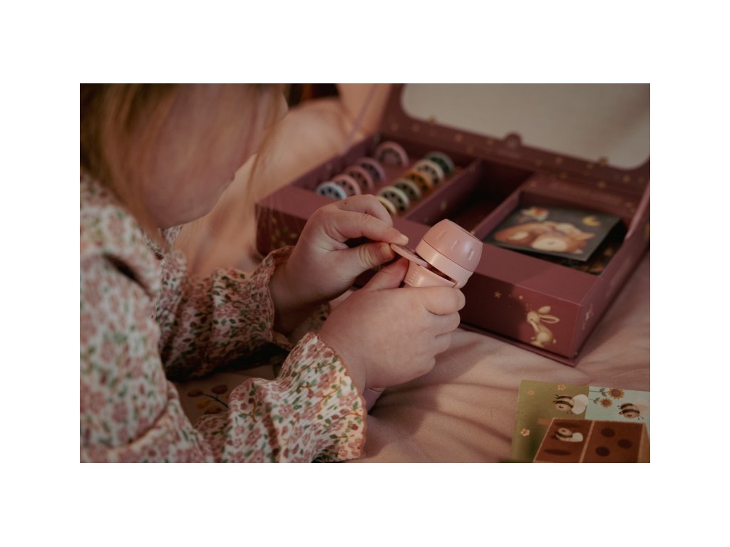 Projektor má pevnú drevenú rukoväť a funguje na batérie, takže si ho deti môžu vziať kamkoľvek so sebou. Po skončení príbehu je možné baterku aj všetko príslušenstvo ľahko uložiť do krásneho úložného boxu. Ideálny pre upokojujúci rituál pred spaním alebo príjemné spoločné chvíle.