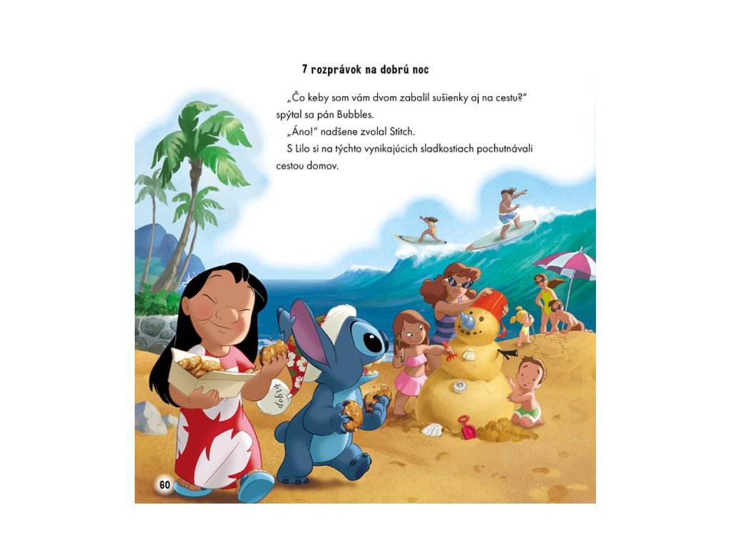 Zaspávajte každý večer s veselým a nezbedným Stitchom! V tejto nádherne ilustrovanej knižke nájdete 7 krátkych rozprávok, ktoré deťom spríjemnia zaspávanie a prinesú úsmev pred spaním. Spolu so Stitchom zažijete vesmírne dobrodružstvo, naučíte sa, ako si nájsť priateľov, a objavíte, čo všetko môže znamenať slovo „rodina“.