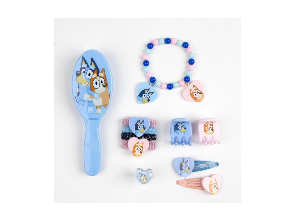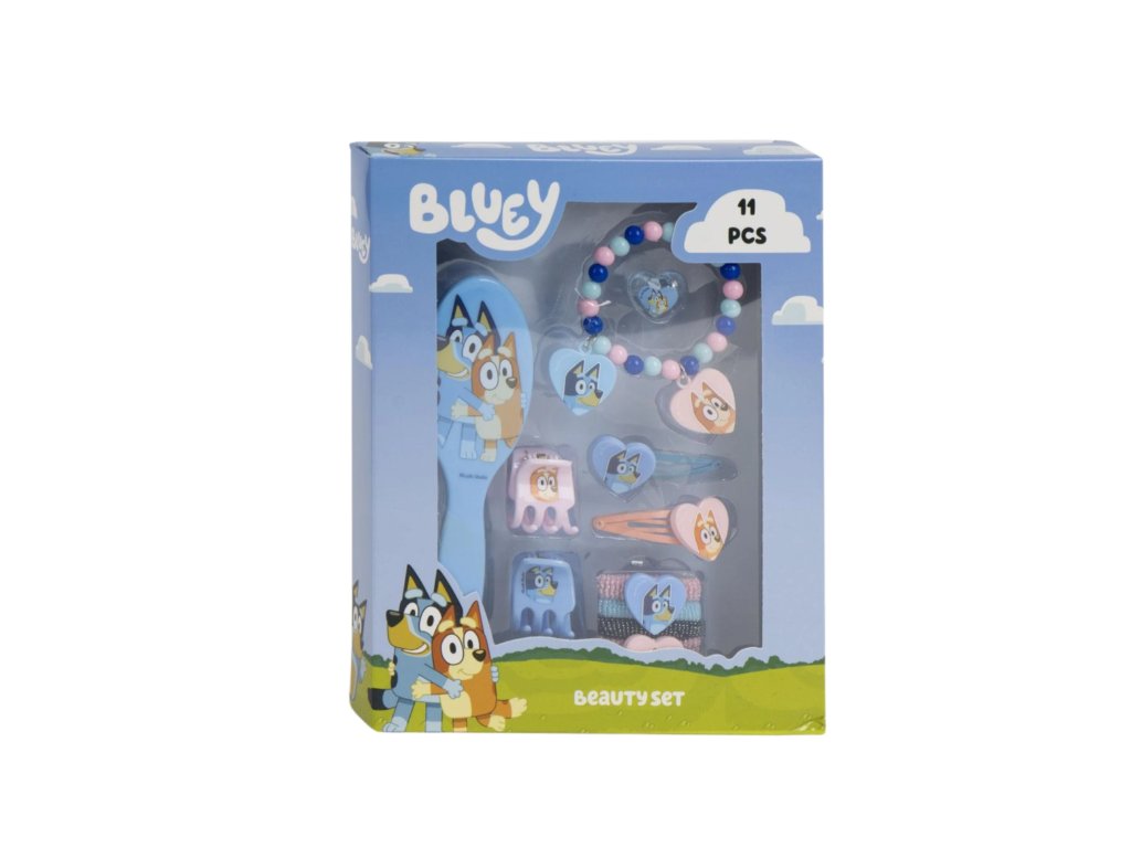 Pre všetky malé parádnice, ktoré milujú Bluey! Tento hravý set krásy s motívom obľúbeného psíka Bluey je ideálny na každodenné česanie, zdobenie a kreatívne hranie. Či už na cestovanie, výlety k babičke alebo domáce módne prehliadky – všetko potrebné v jednom boxe, ktorý si jednoducho zamiluje každé dievča.