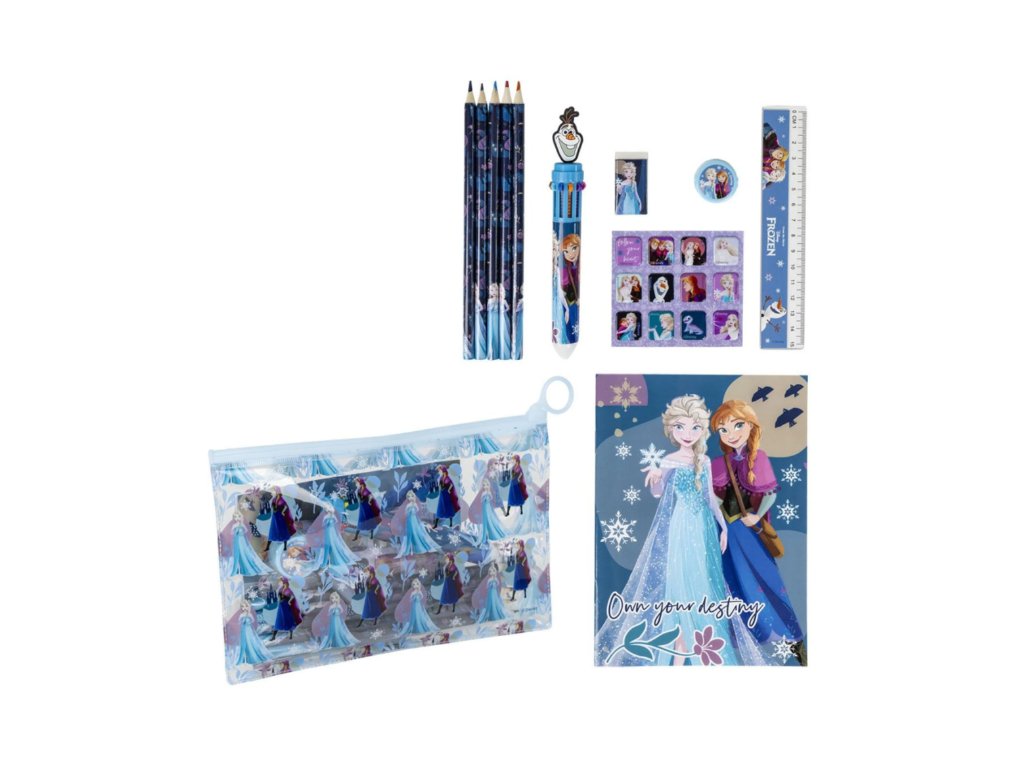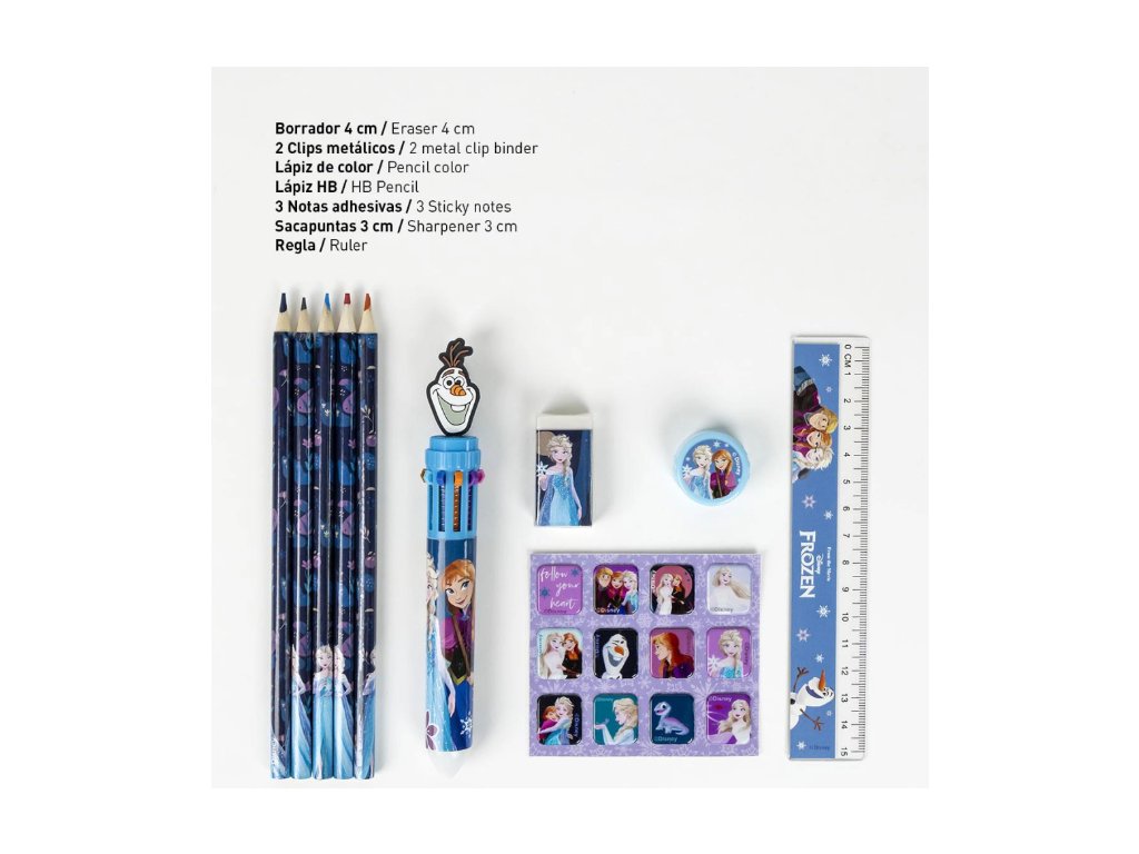 Nech je každý školský deň plný fantázie! S touto nádhernou sadou písacích potrieb s motívom Frozen sa učenie stane rozprávkovým zážitkom. Sada obsahuje všetko, čo malá školáčka potrebuje – a všetko je zabalené v hravej taštičke s motívom Elsy a Anny. Či už do školy, na kreslenie alebo domáce úlohy – s touto sadou sa každá úloha mení na dobrodružstvo!