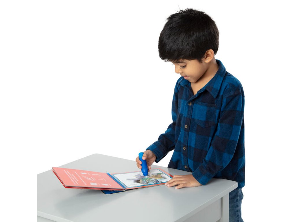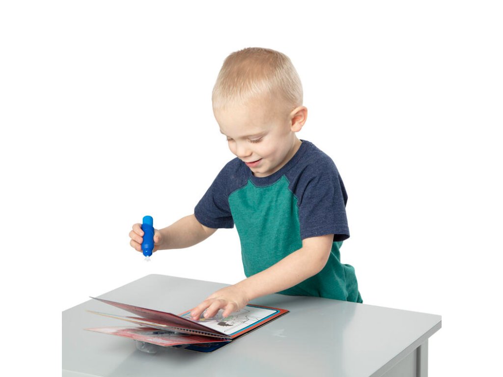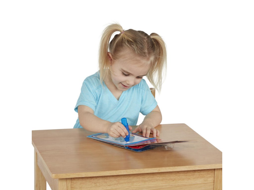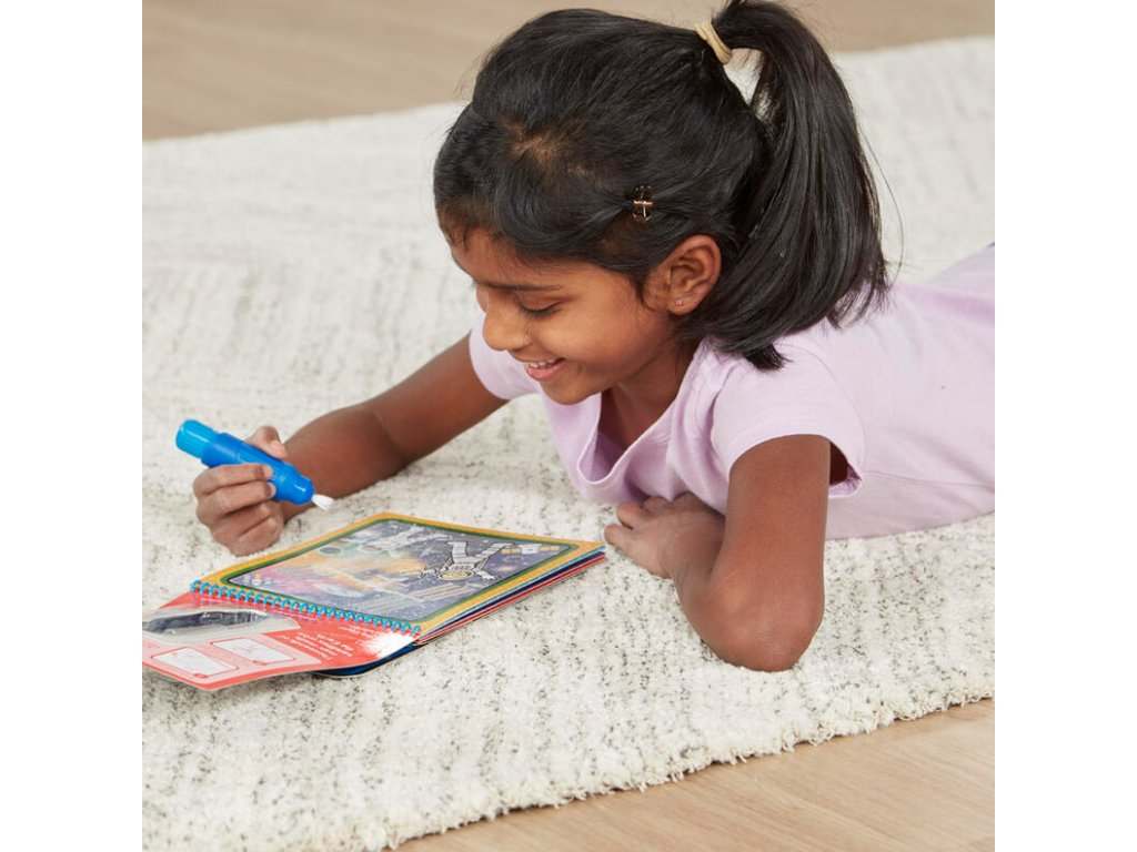 Tieto "vodné" omaľovánky obsahujú štyri opakovane použiteľné strany a znovu naplniteľné vodné pero. Použite vodné pero, ktorého ťahy zobrazujú živé farby na každom obrázku. Potom nechajte stránku vyschnúť a obrázok znova zmizne a po navlhčení sa znova objaví.
