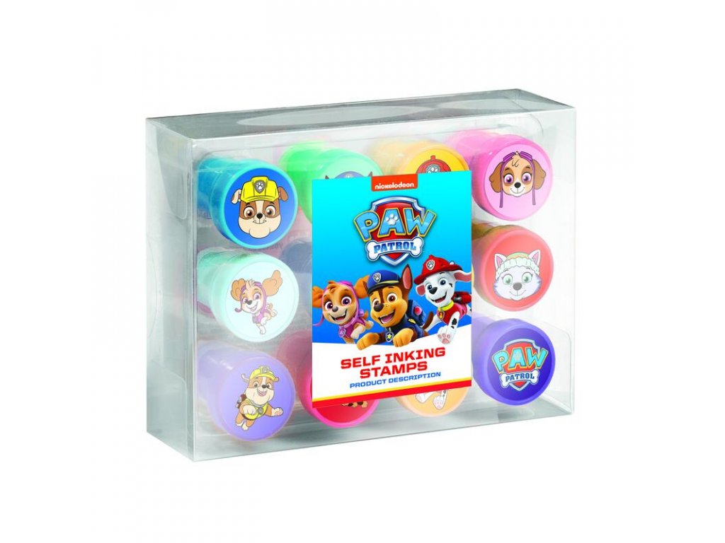 V balení nájdete 12 kusov pečiatok s vašimi obľúbenými charaktermi animovaného seriálu Labková patrola.