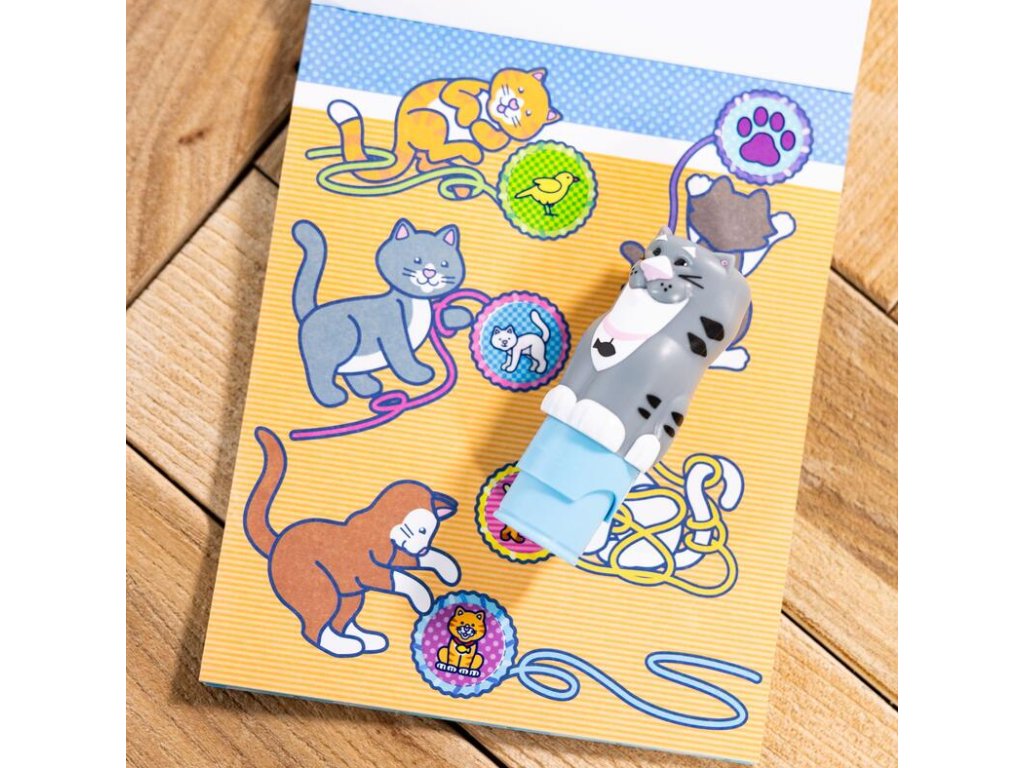 Zberateľská postava – Mačka 24-stránková obrázková knižka so špeciálnym razítkovačom so samolepkami.
