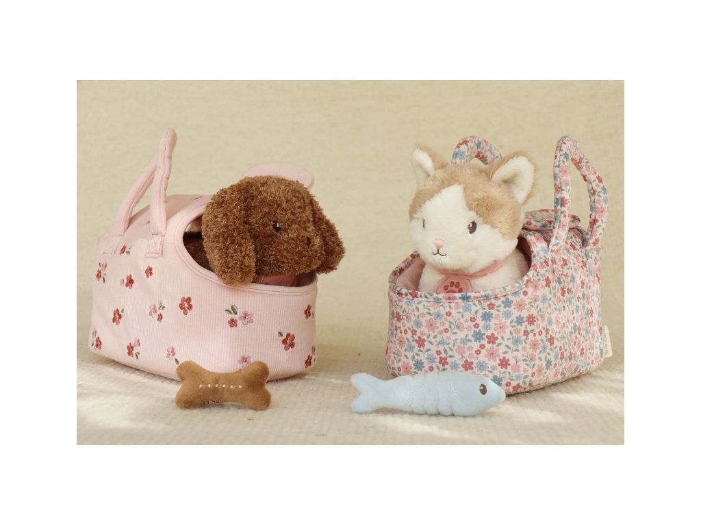 Psík prichádza v elegantnej kvetovanej taške s predným otvorom, aby mohol zvedavo vykukovať von. Vďaka tomu si ho deti môžu vziať kamkoľvek – na prechádzku, na výlet, do škôlky alebo napríklad k starým rodičom. Okolo krku má uviazanú šatku so svojim menom. Plyšová kosť na hranie má vo vnútri magnet, takže drží psíkovi pri papuľke.