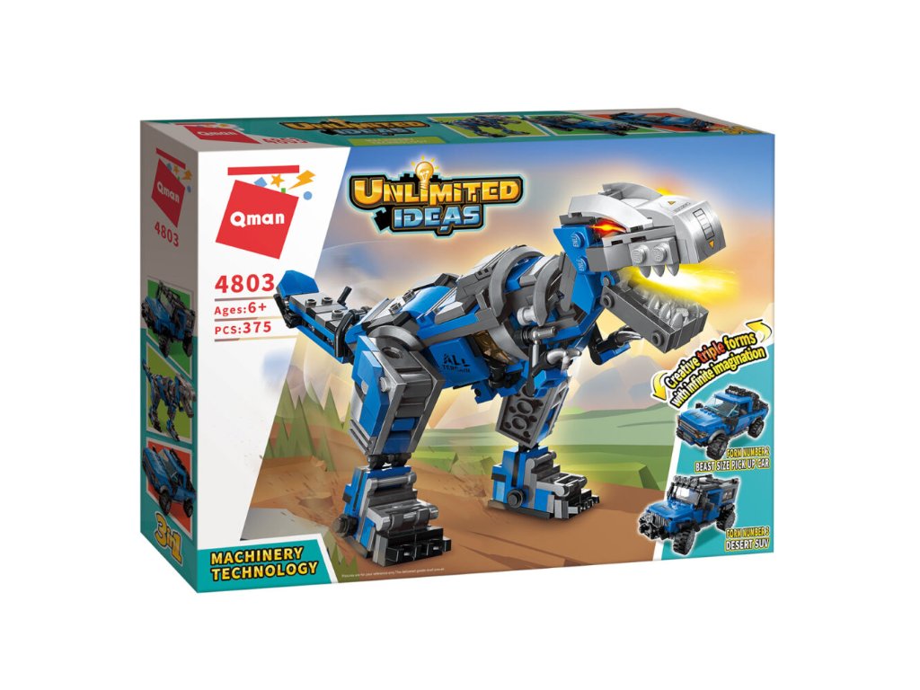Z tejto stavebnice môžete okrem hrozivého dinosaura postaviť aj jedno z dvoch rozdielnych terénnych autíčok. Vysoko variabilné stavebnice Qman z pestrofarebných plastových kociek je možné kombinovať s podobnými stavebnicami mnohých ďalších významných výrobcov. Vyrobené z kvalitného, nezávadného a odolného, ABS plastu. Balené v pestro potlačenej papierovej krabičke.