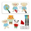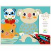 Sada 3 pevných obojstranných kartónových tabuliek v tvare zvieratiek. Na tabuľky sa kreslí tekutými kriedami. Jedna strana je určená na dotvorenie, druhá na voľné kreslenie. Povrch tabuliek stačí utrieť handričkou a začať znovu. Pre deti od 3 rokov.